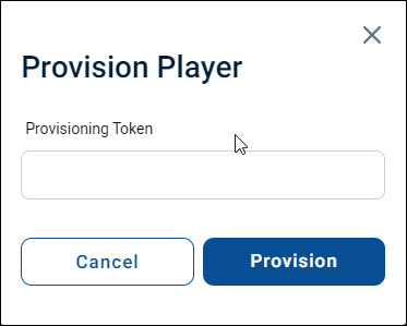 In the Provision Player dialog, enter the provisioning token and click Provision.