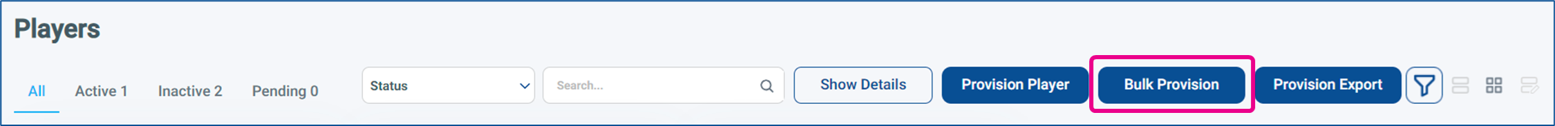 Bulk Provision allows you to upload a CSV file that contains information for multiple players and provision them simultaneously.