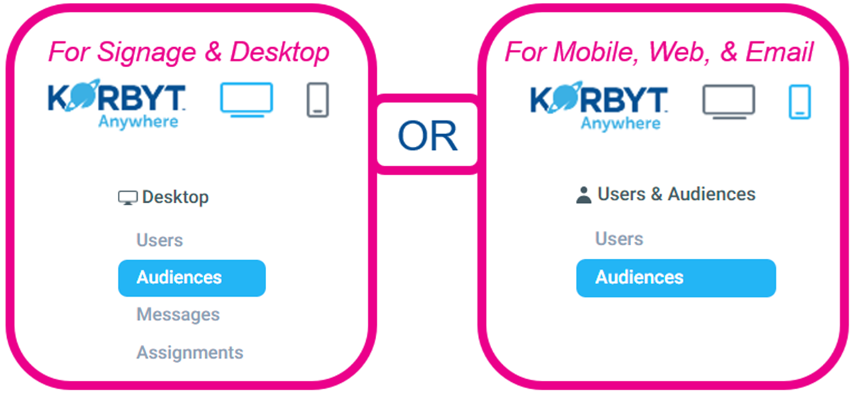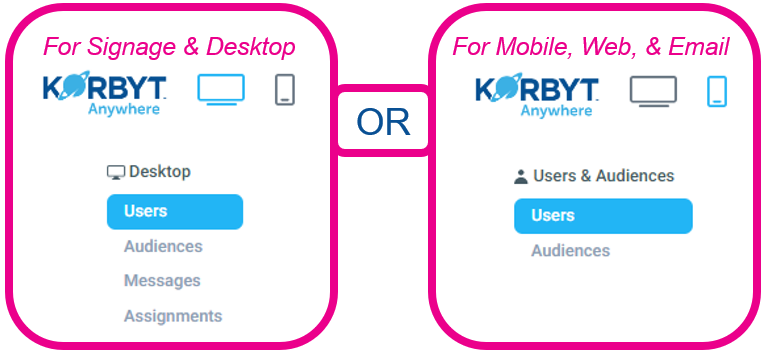 The Desktop(InView) and Mobile & Web platforms share the same end user system, so the steps in this article apply if you have one or both of these Korbyt Products.