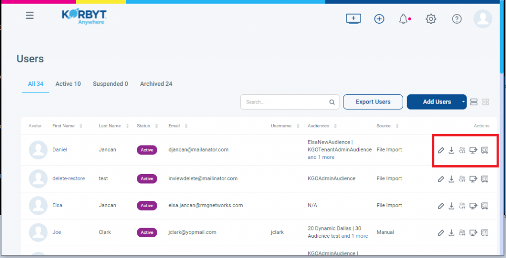 Managing the users who only log into user-facing applications for Desktop and Korbyt Anywhere, not the CMS