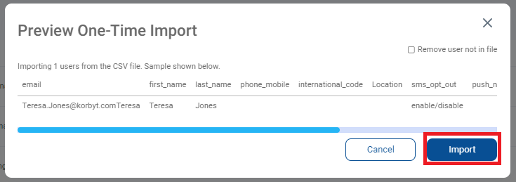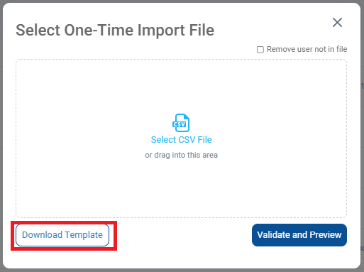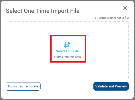 In the Users screen described above, click on the Add Users button and select One Time Import