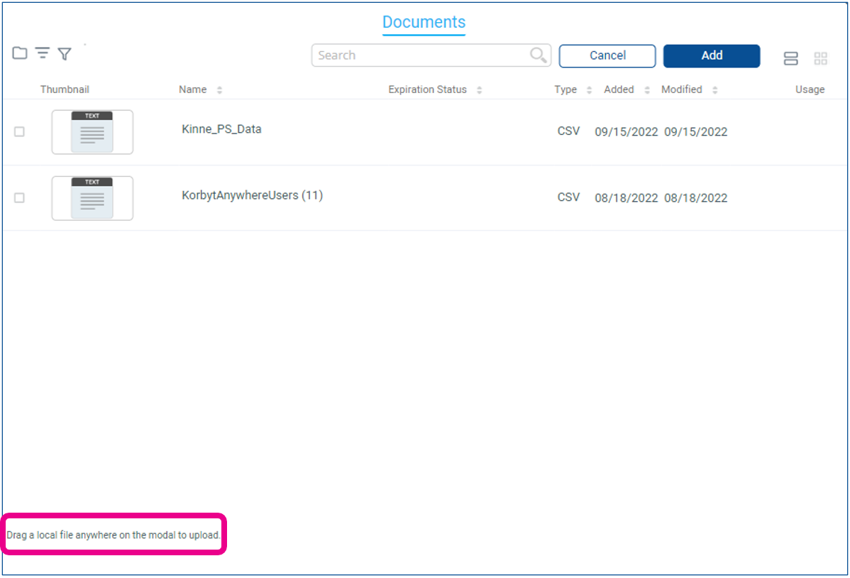 You can Drag-and-Drop the File into this window if you have not already uploaded the file to Korbyt
