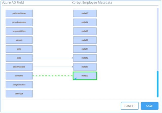 This will allow you to select the Azure AD Fields you would like to make part of the employee record in Korbyt
