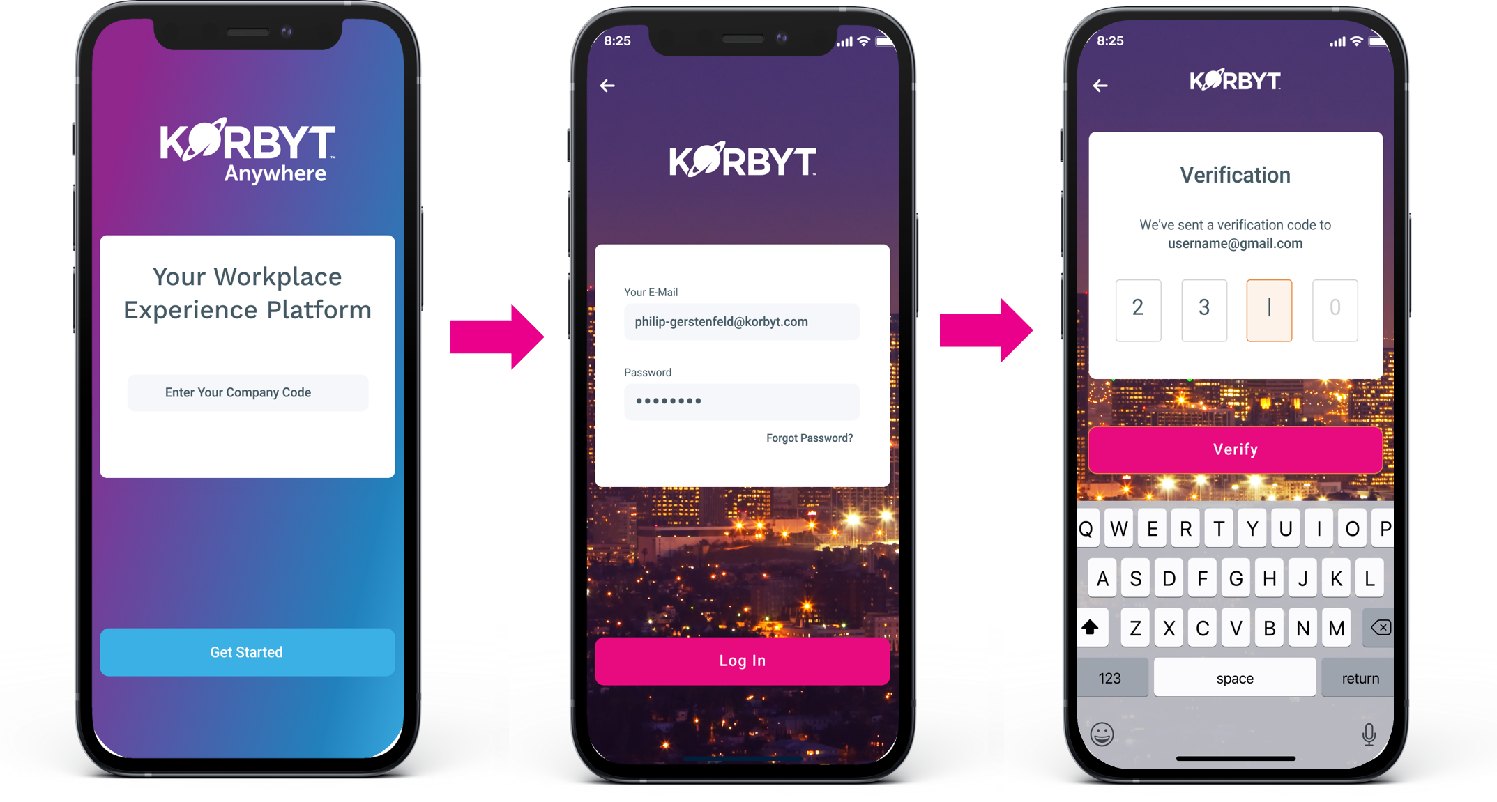When logging into the Korbyt Anywhere mobile app for the first time, you need to enter a unique company code along with login credentials. Your organization will provide you with a company code and login credentials.