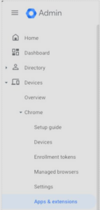 • In your Google Admin Console navigate to Apps & extensions