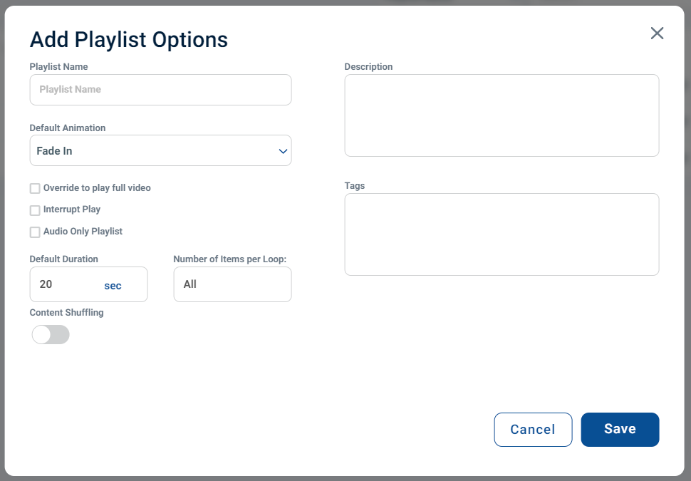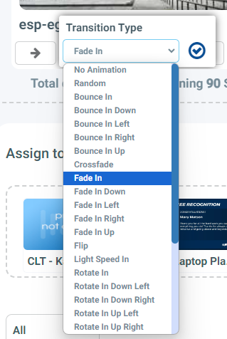 When creating a standard playlist, you have the option to set a Transition for all items on the playlist