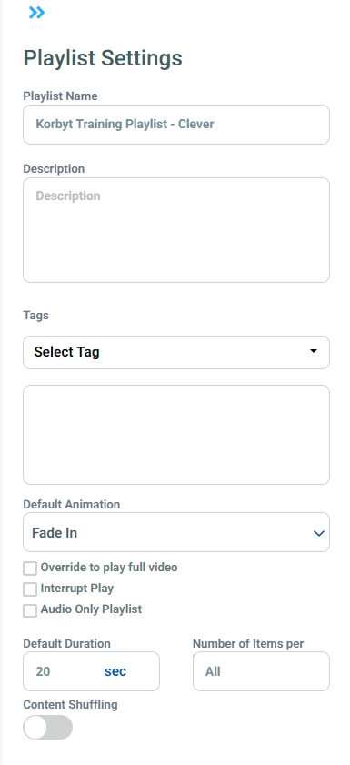 If the Playlist has already been created the Default Animation can be changed in the Playlist Settings menu